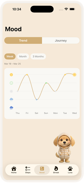 Adopt a lovable puppy companion that reflects your real-life progress. The better you care for yourself, the happier and more vibrant your pup becomes.