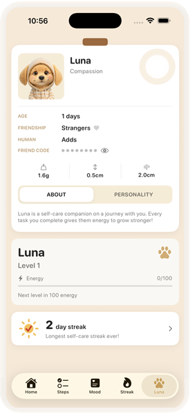 Adopt a lovable puppy companion that reflects your real-life progress. The better you care for yourself, the happier and more vibrant your pup becomes.